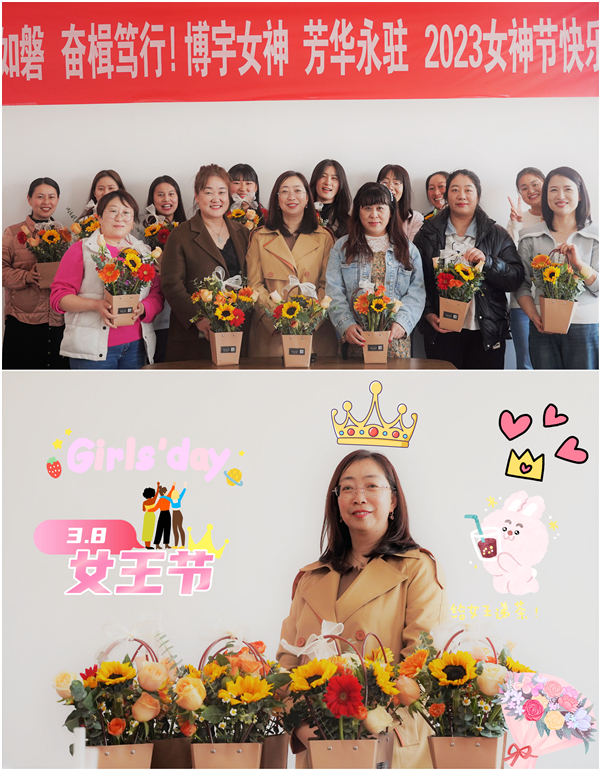 陽春三月,春暖花開,伴著濃濃的春意,“三八”婦女節(jié)如約而至。在這個專屬女同胞的日子里,諸城市博宇環(huán)保設(shè)備有限公司,組織開展了“三八女神節(jié)”插花活動?;顒蝇F(xiàn)場李總親手為大家準(zhǔn)備了奶茶、水果、甜品、鮮花,處處都透漏著小驚喜,儀式感滿滿。營造歡樂溫馨的節(jié)日氛圍,向全體女職工致以節(jié)日真誠的問候和美好的祝愿。初心如磐,奮楫篤行,博宇女神,芳華永駐,2023女神節(jié)快樂!